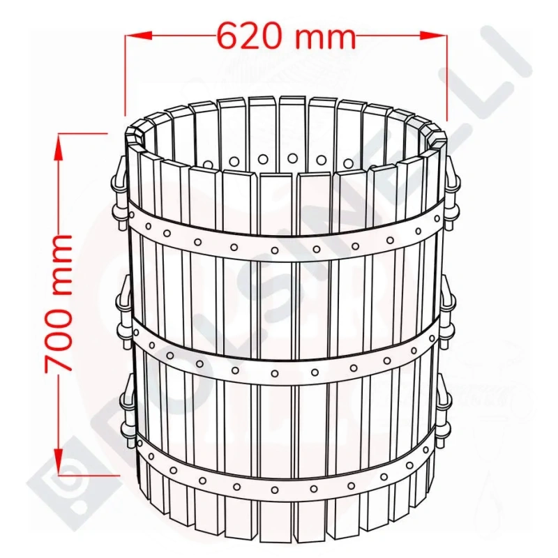 Käyttö: Kori rypäleiden puristamiseen, yhteensopiva rypälepuristimien kanssa.