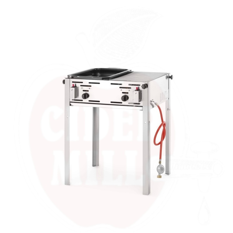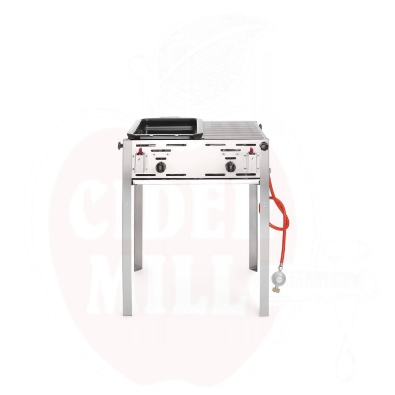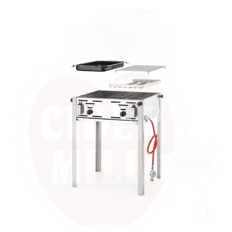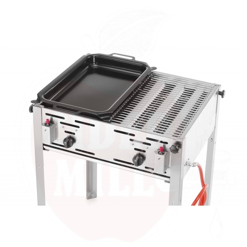 Avainsanat: parilalevy, ruostumaton teräs, emalipinnoitettu paistolevy, pietsosähköinen sytytys, kaasugrilli, kaksivyöhykkeinen grilli, grillipinta, ammattimainen grillilaite