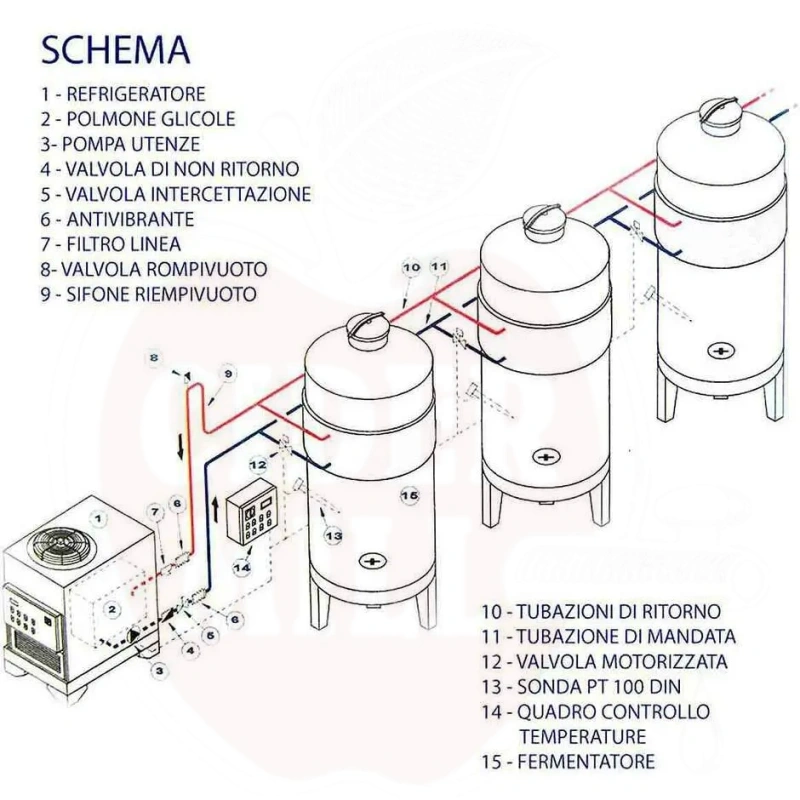 Käyttö: P8-sähköohjausyksikköä käytetään jopa 8 säiliön käymislämpötilan tarkaksi ohjaukseksi, ihanteellinen pienimittakaavaiseen oluen ja viinin valmistukseen kellarissa. Se kytketään jäähdytysjärjestelmään ja mahdollistaa lämpötilan yksilöllisen säädön jokaiselle käymisastialle.