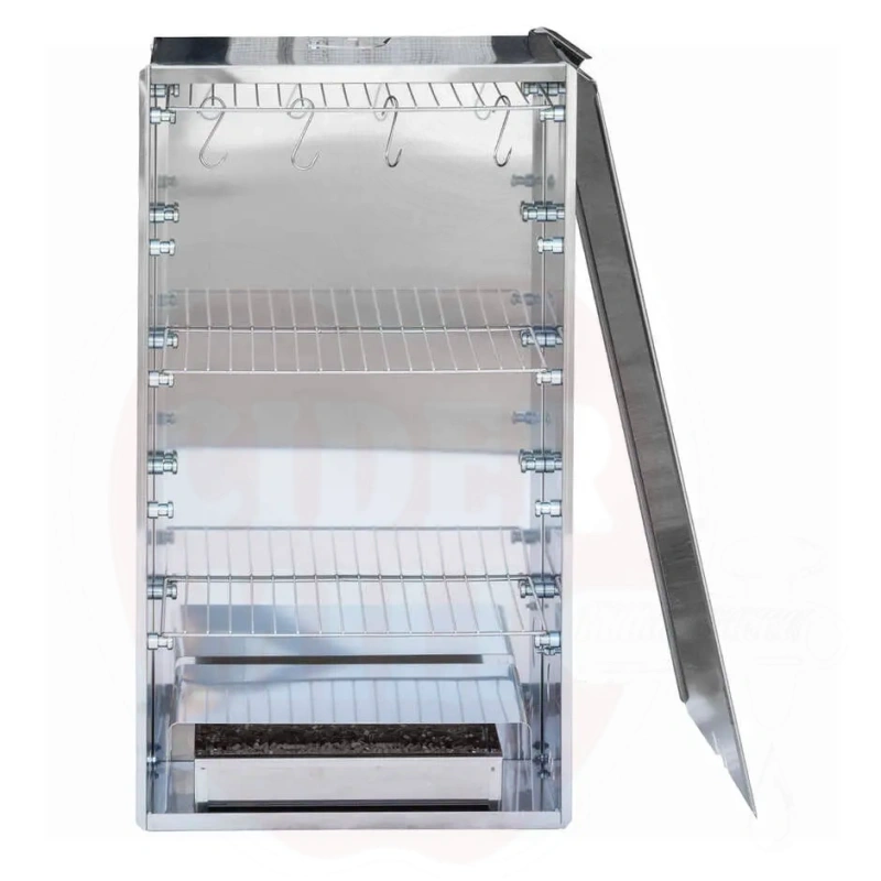 Käyttö: Ruostumattomasta teräksestä valmistettu savustuskaappi lihan, kalan, juuston, leikkeleiden ja ruoan yleiseen savustamiseen. Mahdollistaa ruoan maustamisen ja säilyvyyden pidentämisen.