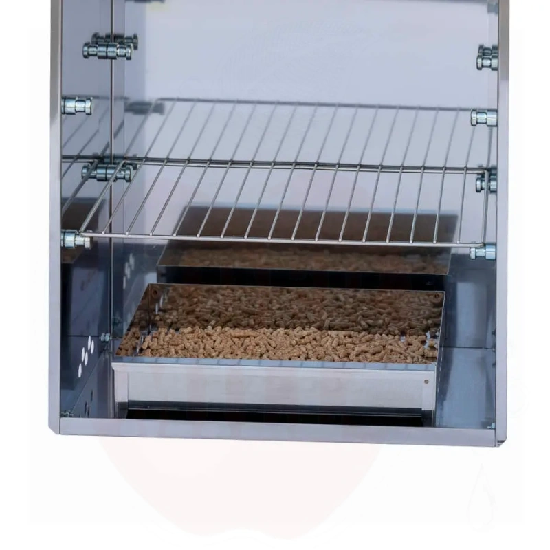 Ominaisuudet: AISI 430 ruostumattomasta teräksestä valmistettu rakenne, 3 AISI 304 ruostumattomasta teräksestä valmistettua ritilää ja 5 ruostumattomasta teräksestä valmistettua koukkua tuotteiden ripustamiseen. AISI 430 ruostumattomasta teräksestä valmistettu paistopelti ja rasvanpoistotarjotin. 1kg savustusmateriaalia mukana (puristettuja kovapuulastuja) 5–10 sykliin. Liukuva etukansi täydellä avauksella ritilän vaakasuoraan asetteluun. Yläpuolinen ilmansäädin, aukon lämpömittarin asettamiseen.