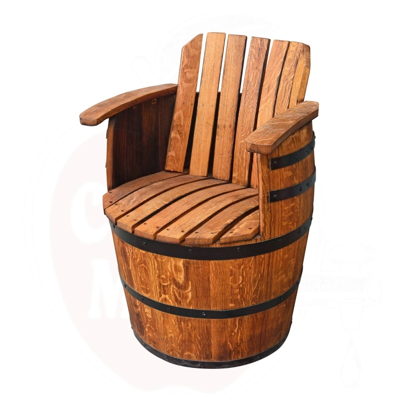 Löydä ainutlaatuinen 225L tammitynnyrista valmistettu nojatuoli, joka yhdistää historiallisen viinitynnyrin arvokkuuden ja nykyaikaisen istuinmukavuuden.