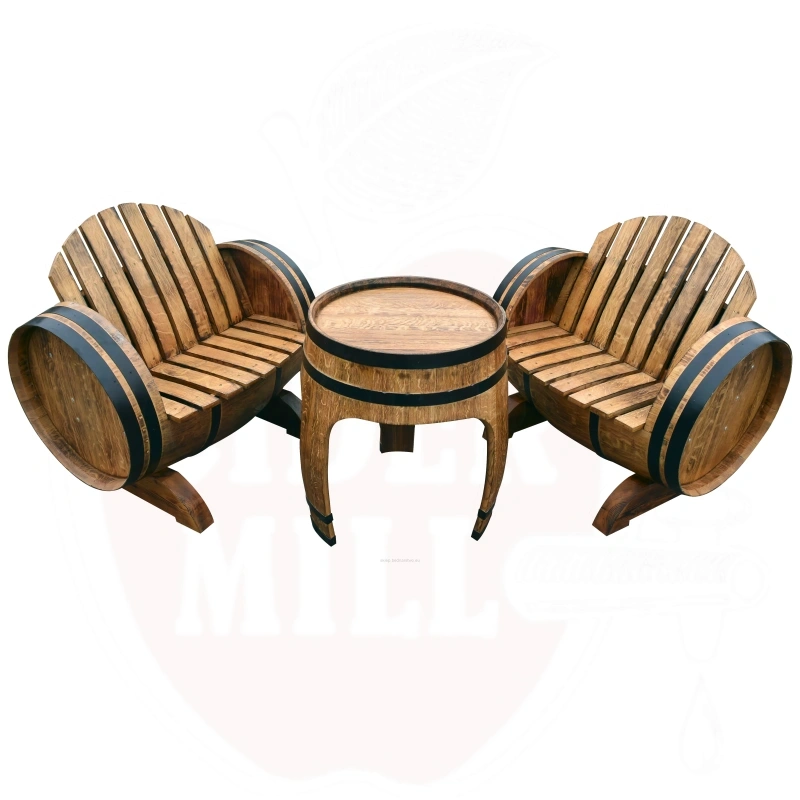 Tammitynnyrikalusteet Barrel-2 56x77cm ja 2 tuolia