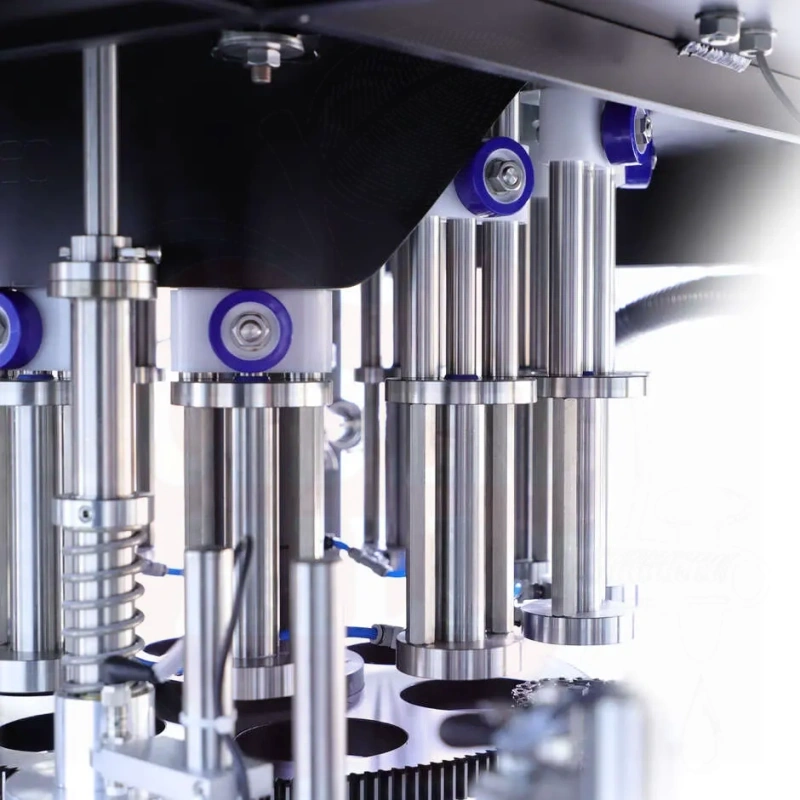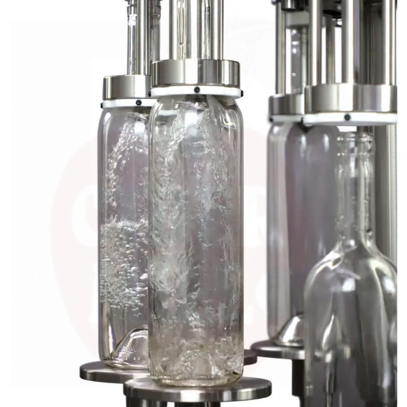 Tekniset tiedot: Tuottavuus: 700L/h tai jopa 1000 pulloa/h. Materiaali: ruostumaton teräs ja itsevoiteleva muovi. Kokonaispaino: n. 1500kg. Pneumaattiset sylinterit. Mitat: 2545×1006×2300mm. 6 täyttönokkaa. Yhteensopiva uppokorkkisulkimen kanssa.