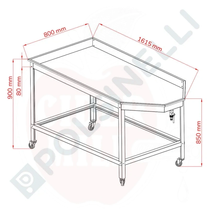 Pöytä 1600x800 ruostumaton teräs