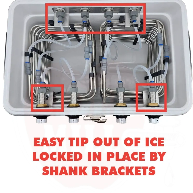 Jockey Box aloituspaketti 4-hanallinen ruostumaton teräs kierukoilla ilman hanoja ja liittimiä