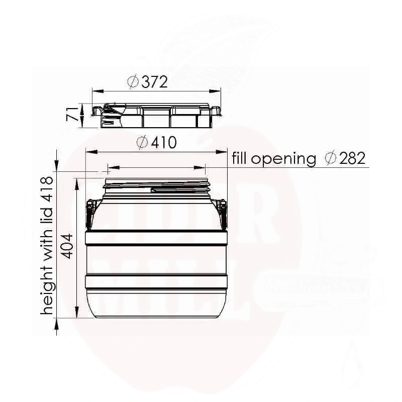 Muovitynnyri 42 l kierrettävällä kannella, elintarvikesertifioitu