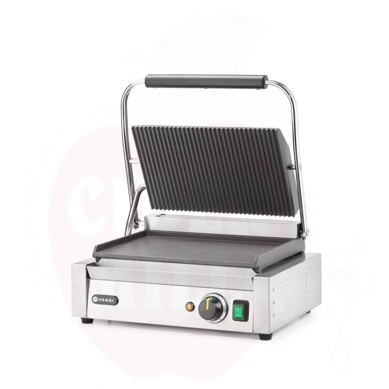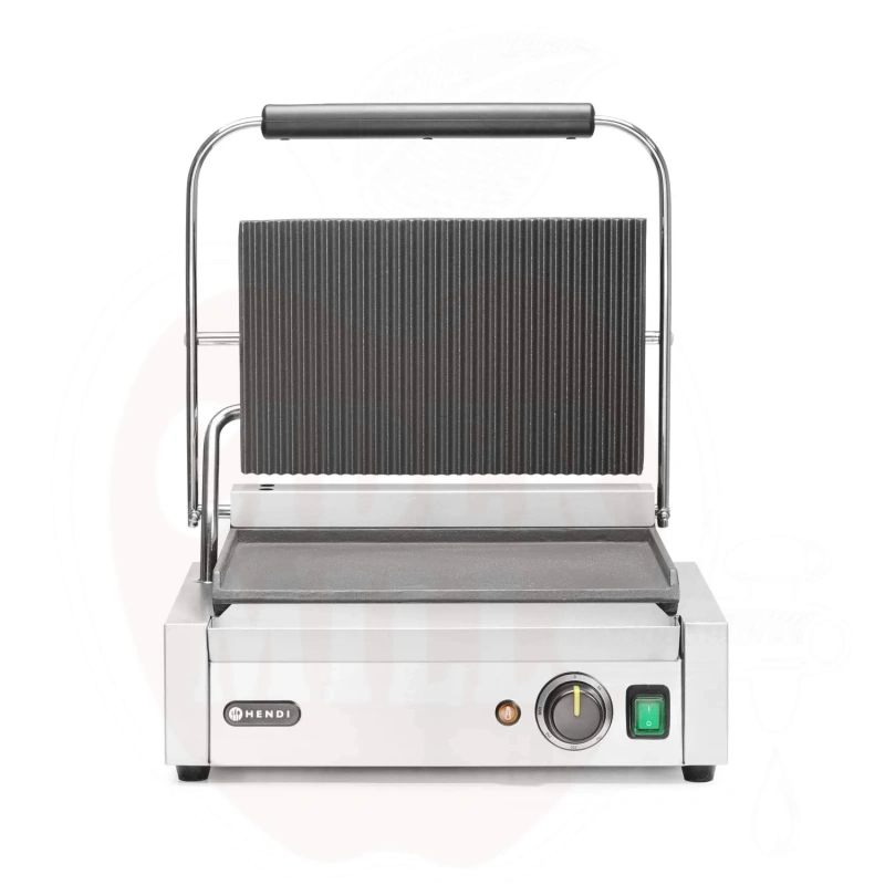 Kontaktigrilli Panini, HENDI, uritettu yläpuoli ja sileä alapuoli, 230V/2200W, 430x375x(K)216mm
