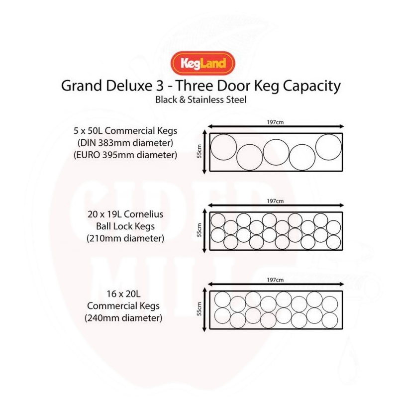 Mūsų Grand Deluxe 3 modeliai pagaminti iš patvarios medžiagos komercinei aplinkai, puikiai tinka naudoti vyrų kampe arba mažame bare/kavinėje. Šis trijų durų modelis talpina didžiausią statinių derinį: 20 x 19L Cornelius Ball Lock statinių ARBA 5 x 50L DIN tipo statines arba jų derinį pagal pageidavimą. Kranai ir antgaliai parduodami atskirai.