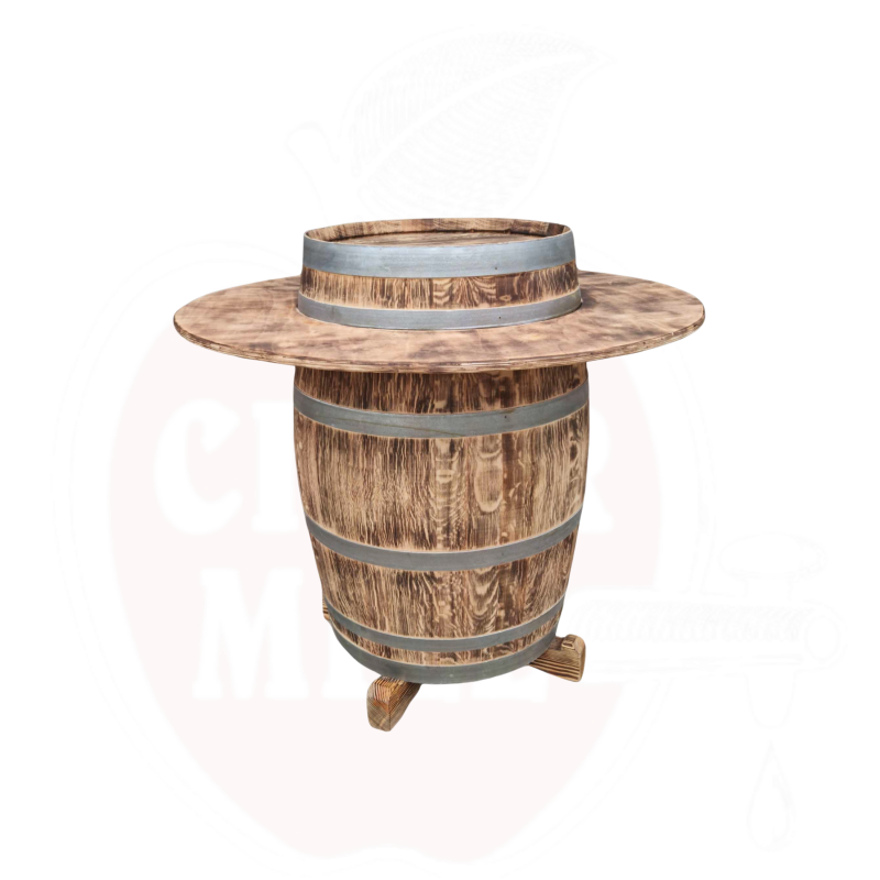 Unikalus baro stalas, pagamintas iš autentiškos 225 litrų ąžuolinės statinės. Elegantiškas ir praktiškas interjero elementas, puikiai tinkantis restoranui, barui ar namų interjerui.