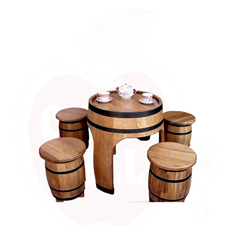 Ąžuolinis statinės stalas su 4 kėdėmis