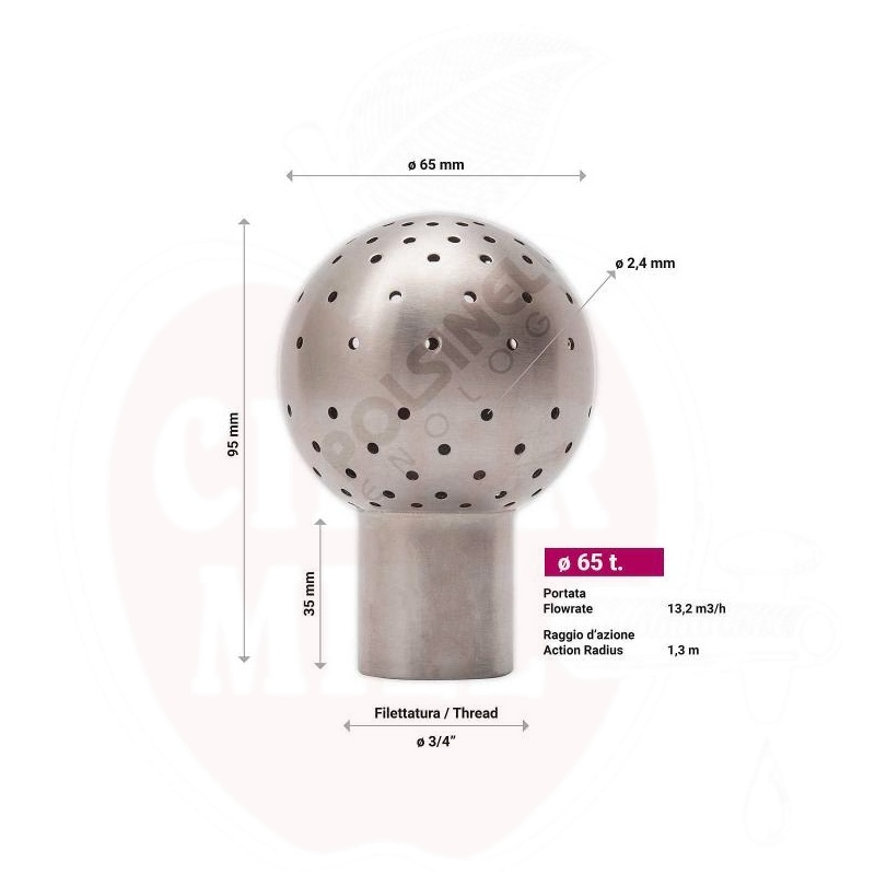Kompaktiška ir patvari AISI 316 nerūdijančio plieno rezervuaro plovimo galvutė užtikrina kruopštų valymą visame rezervuaro vidiniame paviršiuje. Šis efektyvus plovimo sprendimas idealiai tinka mažų ir vidutinio dydžio pramoninių rezervuarų priežiūrai.