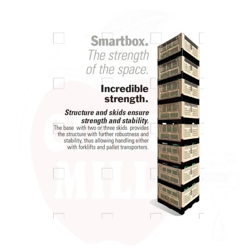 Patvari ir kompaktiška dėžė iš HD-PE medžiagos puikiai tinka žemės ūkio produktų, uogų ir vaisių transportavimui bei sandėliavimui. UV atspari ir sertifikuota sąlyčiui su maistu medžiaga užtikrina ilgą tarnavimo laiką.