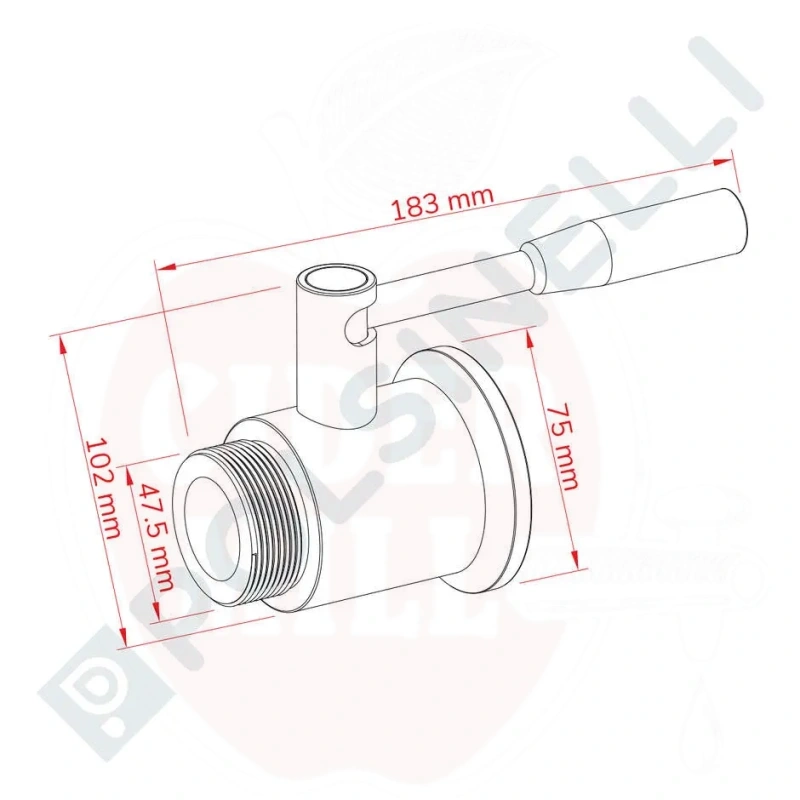Techniniai duomenys: Medžiaga: Nerūdijantis plienas AISI 304. Jungtis: Garolla 40. Čiaupo tipas: Svirtinis.