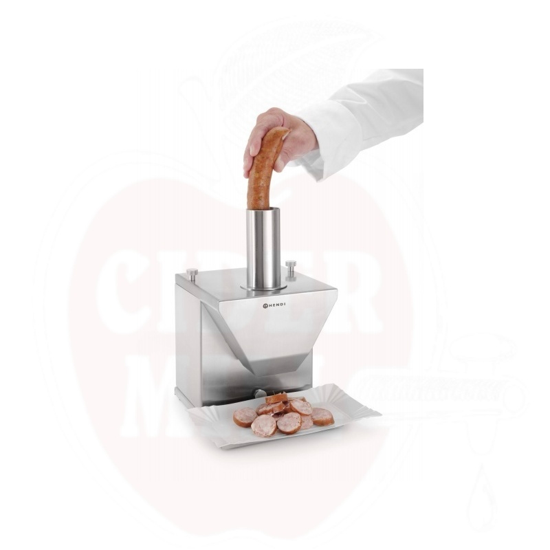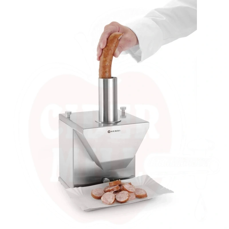 Kokybiškas elektrinis dešrų pjaustyklė su dvigubais ašmenimis užtikrina greitą ir tikslų dešros gaminių pjaustymą. Prailgintas tiekimo vamzdelis leidžia apdoroti visas standartines dešras ir mėsos gaminius iki 48 milimetrų skersmens.
