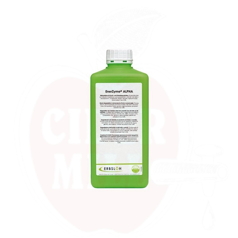„Enerzym Alpha Erbslöh 1 kg" yra labai koncentruotas skystas amilazės fermentas, specialiai sukurtas sulčių pramonei. Šis fermentas skaido krakmolą žemoje temperatūroje, todėl yra idealus sprendimas įvairių vaisių sulčių perdirbimui.