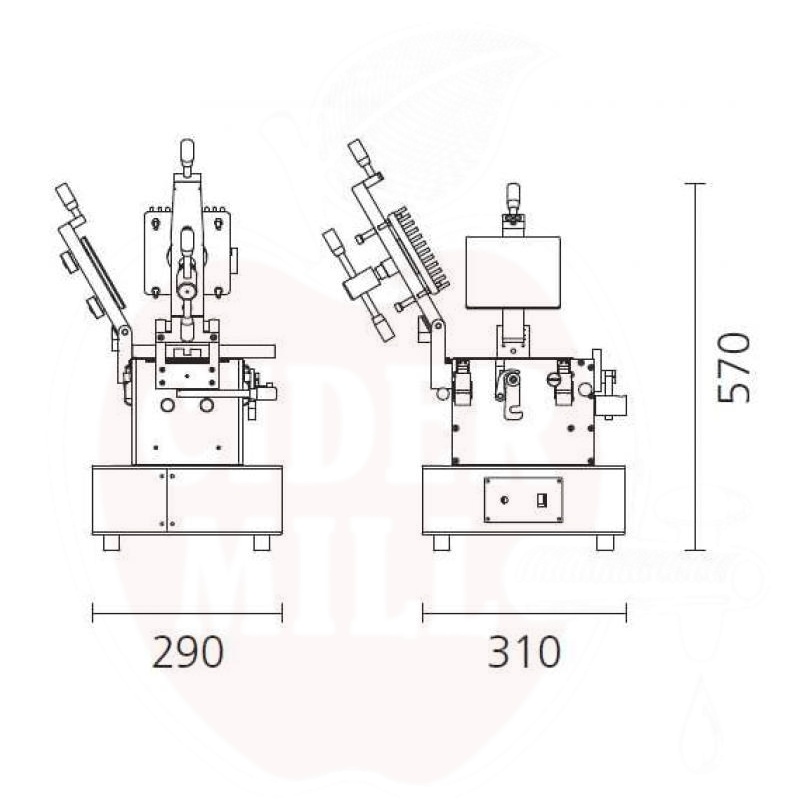 - Darbinio įrenginio matmenys: 310 x 290 x 570 mm
