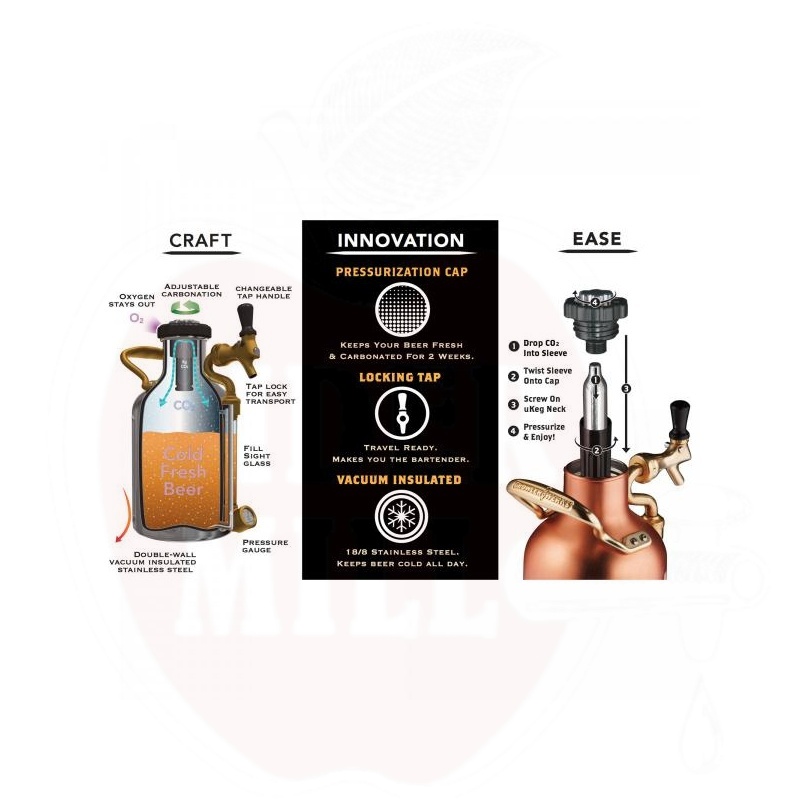 uKeg™ 64 yra modernus 1,9 litrų talpos nerūdijančio plieno mini statinaitė, išlaikanti gazuotų gėrimų šviežumą ir kokybę.