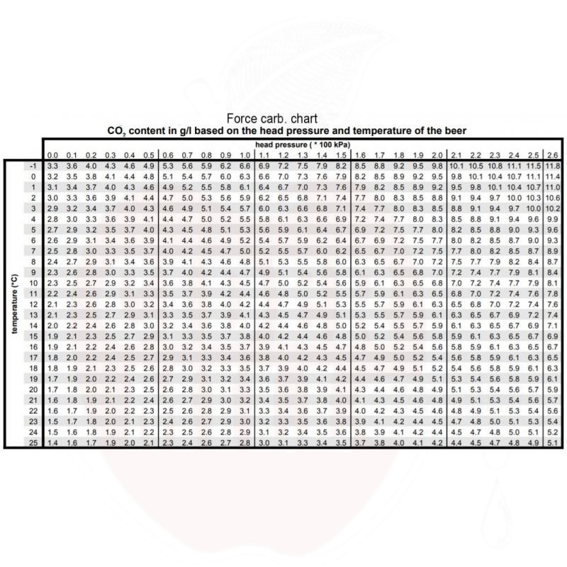 - CO2 slėgis: 2,6 bar (9,9 g/l)