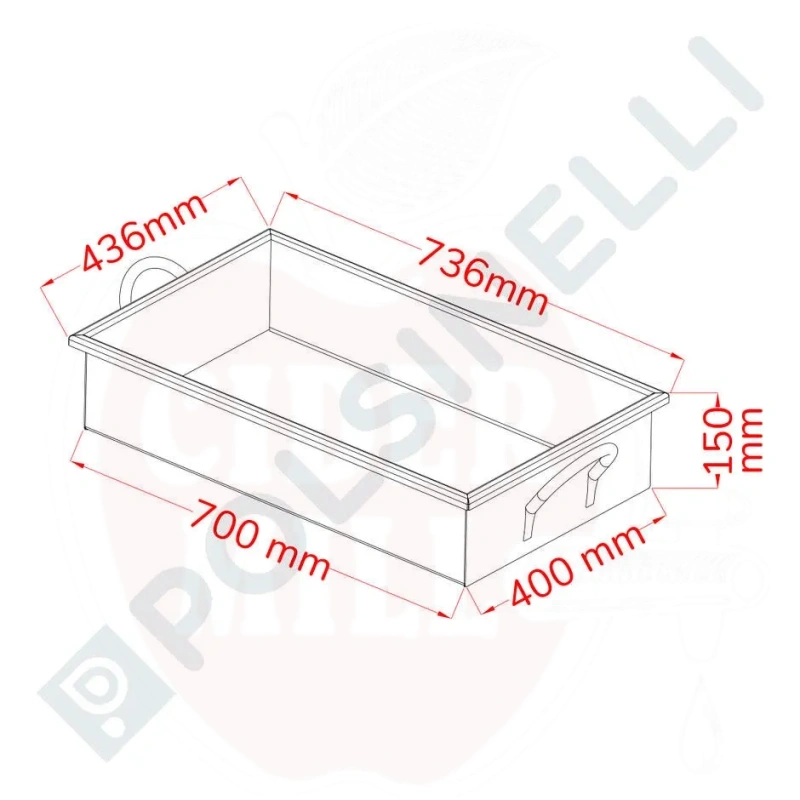 Stačiakampė keptuvė iš AISI 304 nerūdijančio plieno yra būtinas įrankis tiek profesionaliems virėjams, tiek tiems, kas mėgsta gaminti daugeliui žmonių namuose. Su matmenimis 700x400mm ši keptuvė siūlo didelį virimo paviršių, o jos 150mm aukštis sumažina karšto aliejaus išsiliejimo riziką kepinant, todėl puikiai tinka saugiai tvarkyti didelius maisto kiekius.