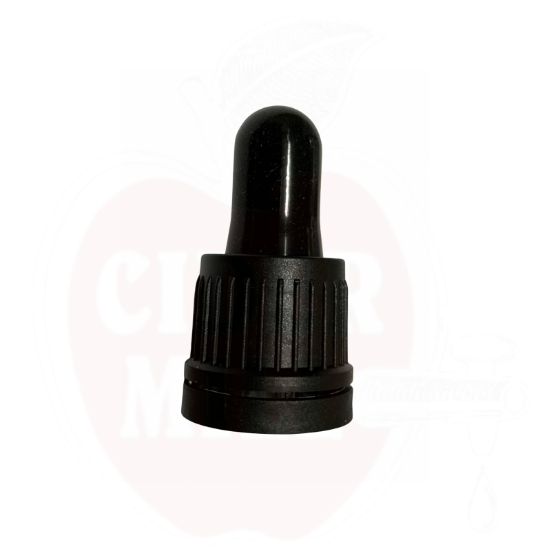 Juodas stiklinio butelio pipetė su apsauginiu kontroliniu žiedu