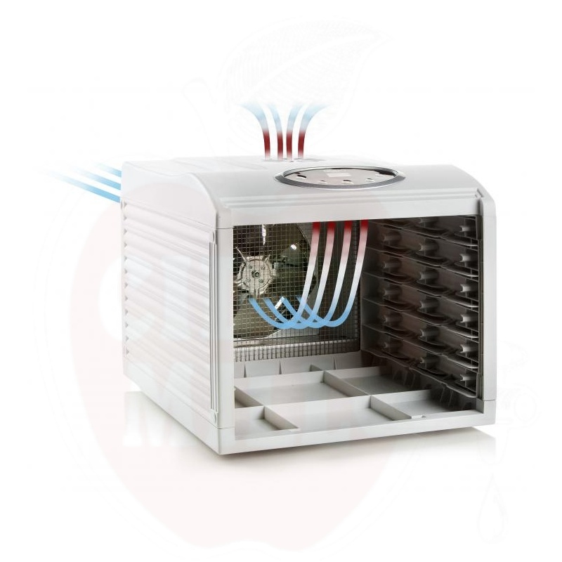 Efektyvus ir universalus maisto džiovintuvas leidžia patogiai džiovinti įvairius maisto produktus nuo uogų iki mėsos griežinėlių. Dėl inovatyvios galinės ventiliacijos sistemos džiovinimas vyksta tolygiai visuose padėkluose.