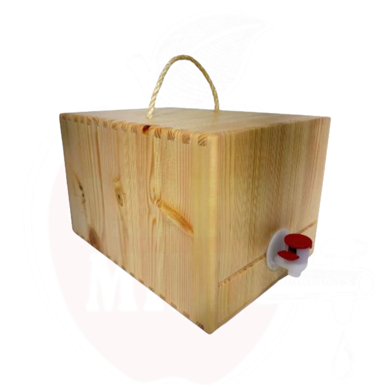 Kokybiška medinė dėžė, pagaminta iš tvirtos slovėniškos eglės medienos. Idealus sprendimas 5 litrų bag-in-box maišeliams. Dėžė užtikrina gerą apsaugą ir suteikia jūsų produktams elegancijos.