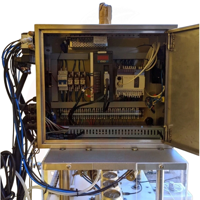 Skardinių linija veikia visiškai automatiškai: tuščios skardinės savarankiškai juda į pildymo poziciją, vyksta pildymas, hermetinis uždarymas ir gatavos produkcijos išėjimas. Sistemai reikia tik vieno operatoriaus ir užtikrina vienodą kokybę viso gamybos proceso metu.