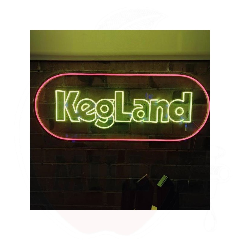 Raktažodžiai: LED neoninė šviesa, "KegLand" šviesos ženklas, namų baro įranga, dekoratyvinis apšvietimas, minkšta LED juosta, prie sienos montuojamas šviestuvas, nuotaikos apšvietimas, poilsio kambario įranga, hobio kambario apšvietimas, LED dizaino šviestuvas.