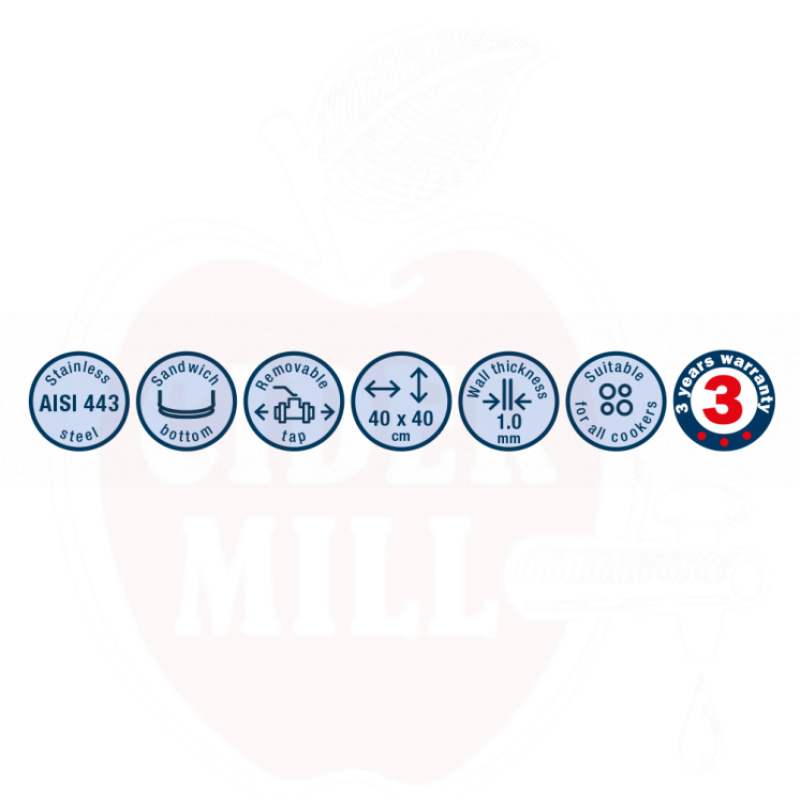 Katilo dizainas užtikrina greitą ir tolygų kaitinimą, kas yra ypač svarbu alaus gamyboje. Dėl lygių paviršių katilas lengvai valomas. Gaminiui suteikiama patikima 3 metų garantija.