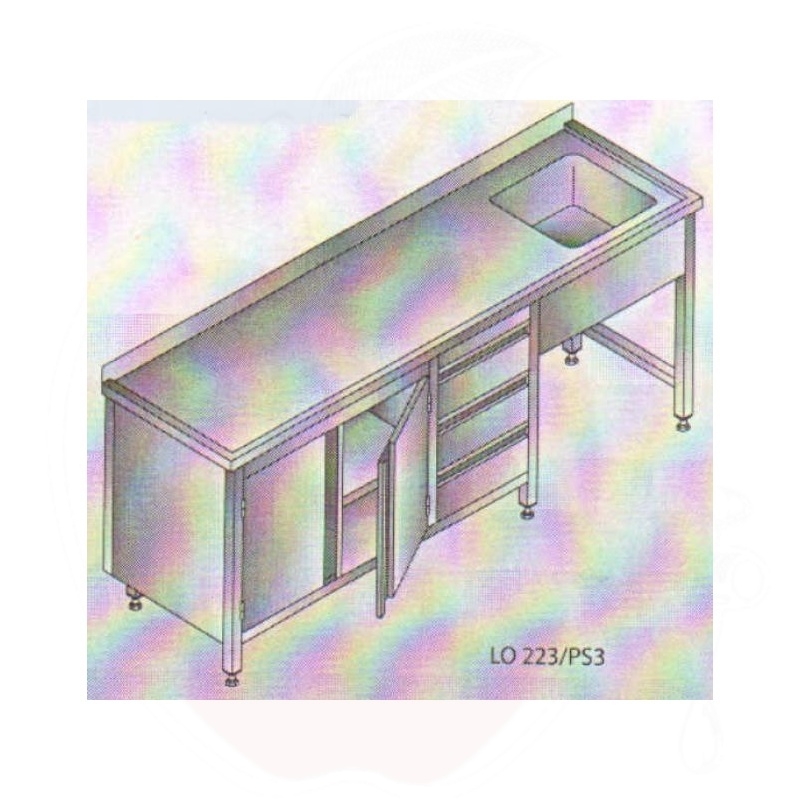 Darbo stalas puikiai tinka restoranams, pramoninėms virtuvėms ir maisto perdirbimo patalpoms. Plautuvės vieta dešinėje pusėje užtikrina ergonomišką darbo organizavimą, o stalčiai ir spinta suteikia optimalią saugojimo erdvę.