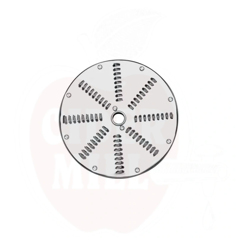 Kokybiškas nerūdijančio plieno pjovimo diskas specialiai sukurtas efektyviam šviežių žaliavų tarkavimui ir smulkinimui. Puikiai tinka obuoliams, kriaušėms ir kietesnėms uogoms apdoroti sulčiaspaudes ir pramoniniuose įrenginiuose.