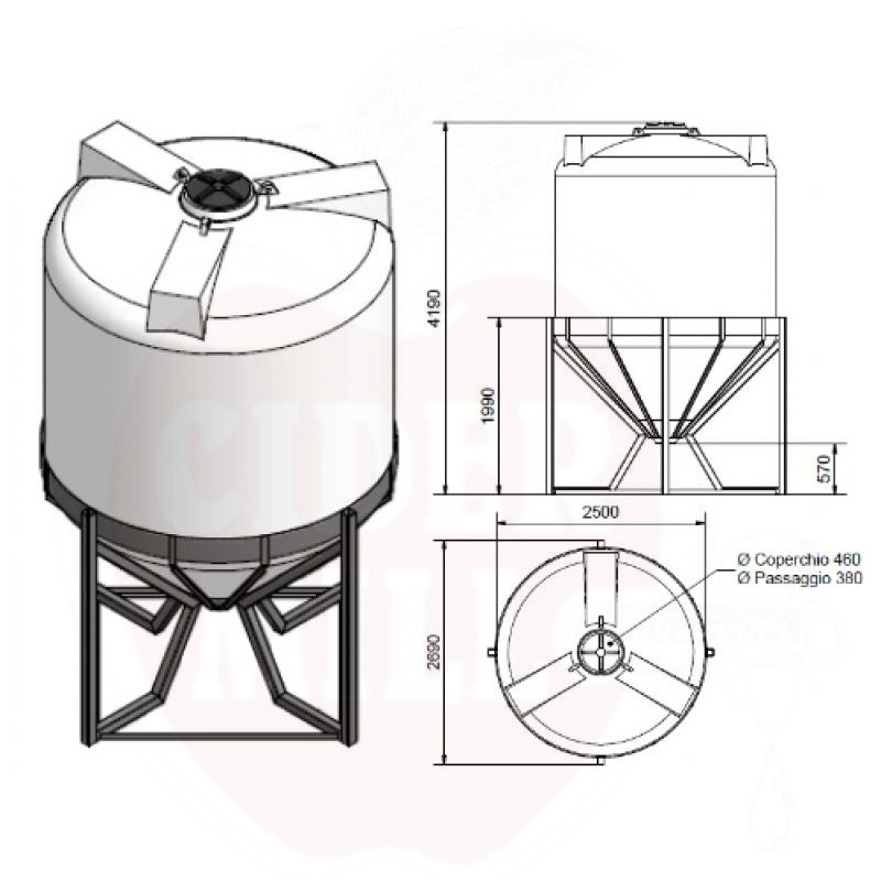 Didelės talpos pramoninės kokybės fermentacijos rezervuaras pagamintas iš patvaraus maisto pramonei tinkamo plastiko. Rezervuaras turi tvirtą pagrindo rėmą, užtikrinantį stabilumą ir ilgalaikį patikimumą.