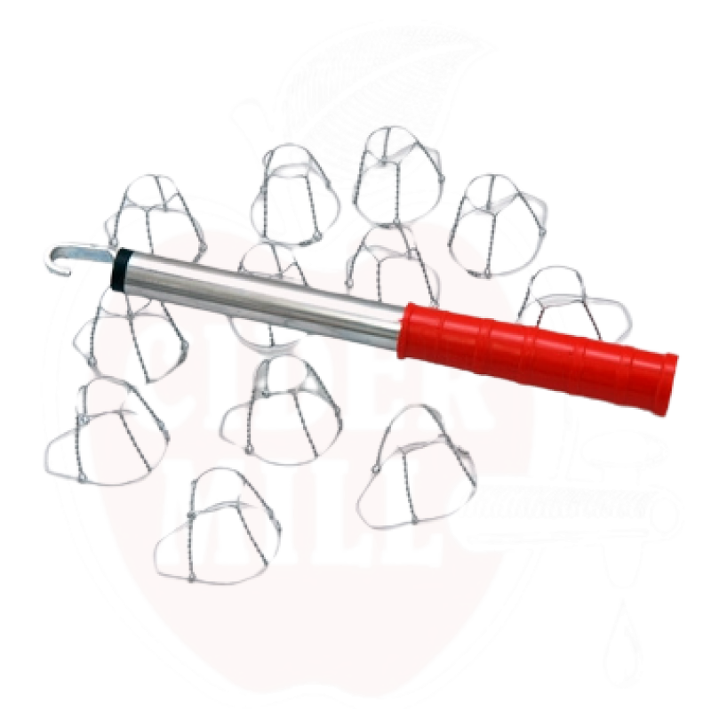 Profesionalus rankinis įrenginys šampano ir putojančio vyno butelių kamščiams pritvirtinti vielele. Šis patvarus ir tikslus įrankis užtikrina patikimą kamščių fiksavimą ir puikiai tinka mažesniems vyno gamintojams bei mažų partijų gamybai.