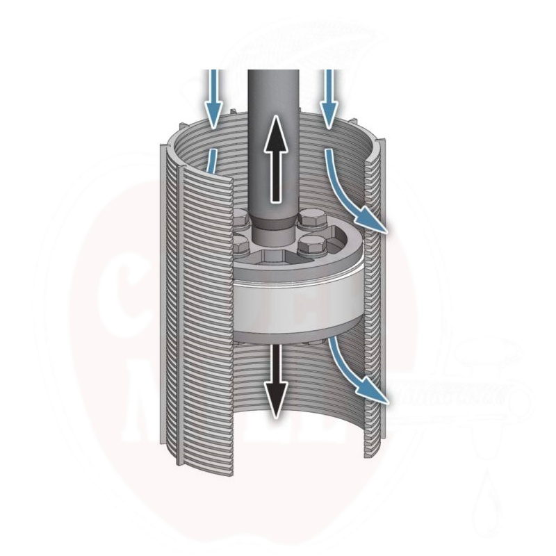 Nerūdijančio plieno profilio filtravimo elementas turi tiksliai suvirinta struktūrą. Valymo procesą galima aktyvuoti mygtuko paspaudimu arba papildomai įsigyjamu laikmačiu. Specialus grandiklis užtikrina tolygų viso elemento valymą.