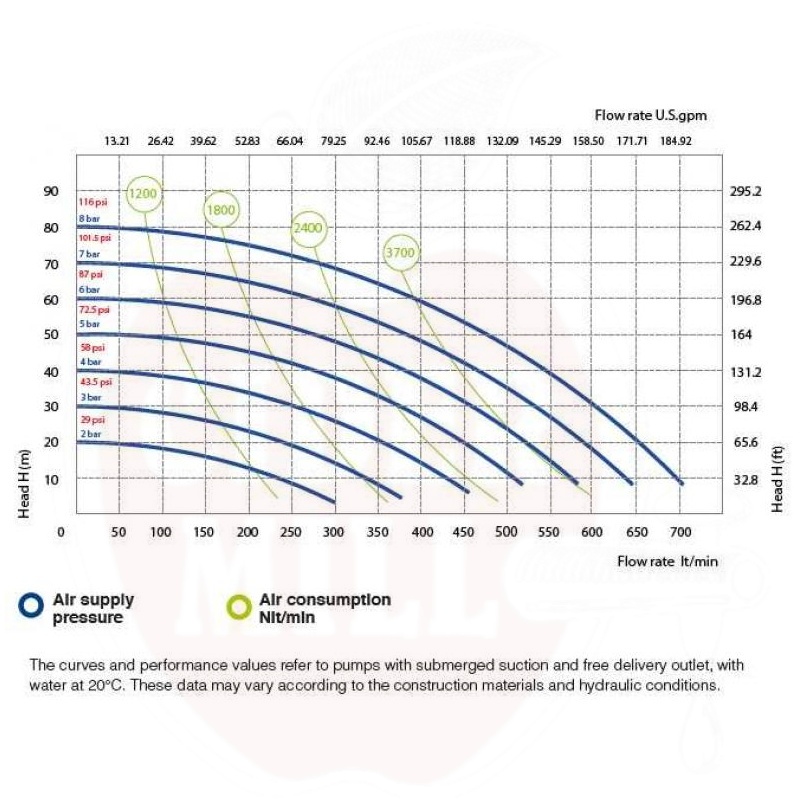 - Siurbimo gylis: skysčiai 9,8 metro, sausos medžiagos 5 metrai