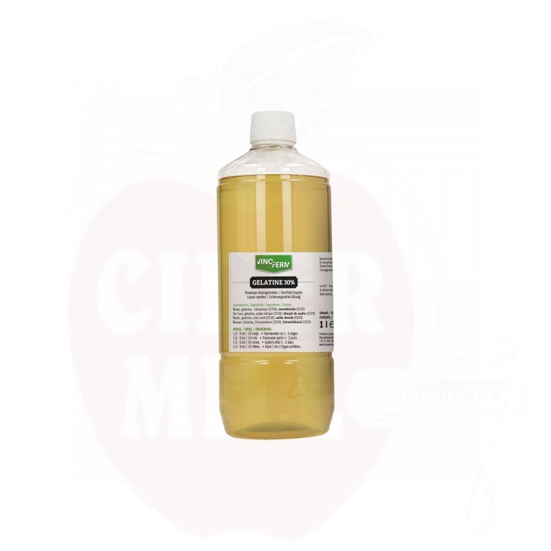 Vinoferm Gelatin 30% yra specialiai gėrimų apdorojimui sukurtas 30% maistinio želatino vandeninis tirpalas, apdorotas rūgštiniu metodu. Šis efektyvus skaidrinimo agentas puikiai tinka vynų, vaisių vynų, sulčių ir kitų gėrimų skaidrinimui. Produktas yra paruoštas naudoti ir gali būti dedamas tiesiai į gėrimą, kas daro jo naudojimą ypač patogų ir greitą - nereikia ilgo paruošimo.