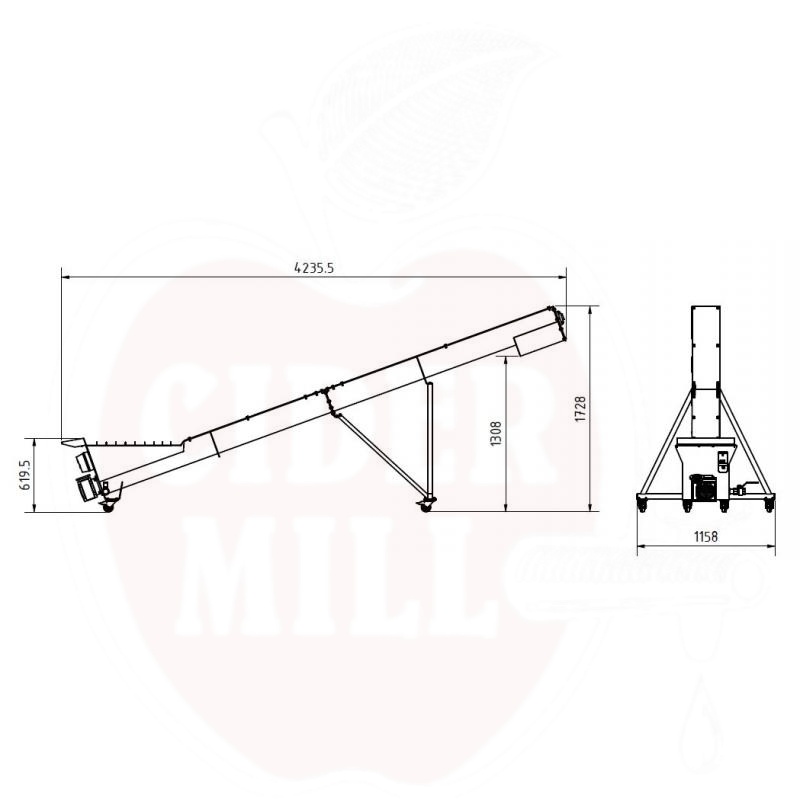 Raktažodžiai: sraigtinis elevatorius, maisto pramonės įranga, nerūdijančio plieno transporteris, mobilus elevatorius, uogų transporteris, vaisių transporteris, pramoninis keltuvas, maisto pramonės konvejeris