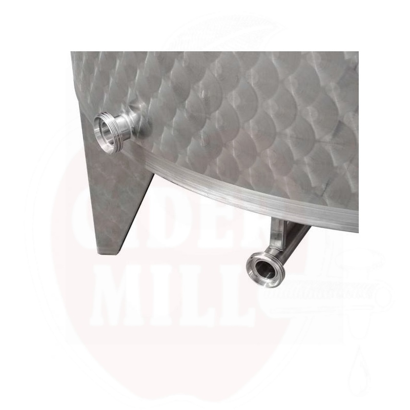 Fermentatorius, pagamintas iš AISI 304 nerūdijančio plieno, turi dalinę išleidimo angą, sujungtą su cilindrine dalimi, ir visišką išleidimo angą dugne, leidžiančią lengvai ištuštinti ir valyti. 40 cm aukščio nerūdijančio plieno kojos užtikrina tobulą stabilumą.