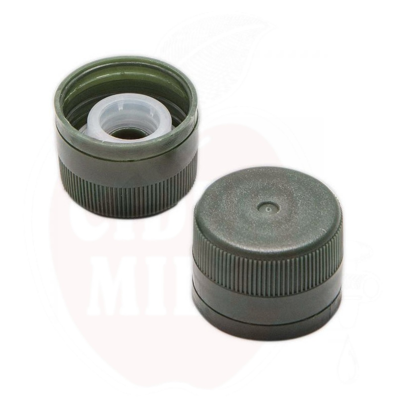 Užsukamas plastikinis dangtelis 31,5mm tamsiai žalias, su adapteriu 100 vnt
