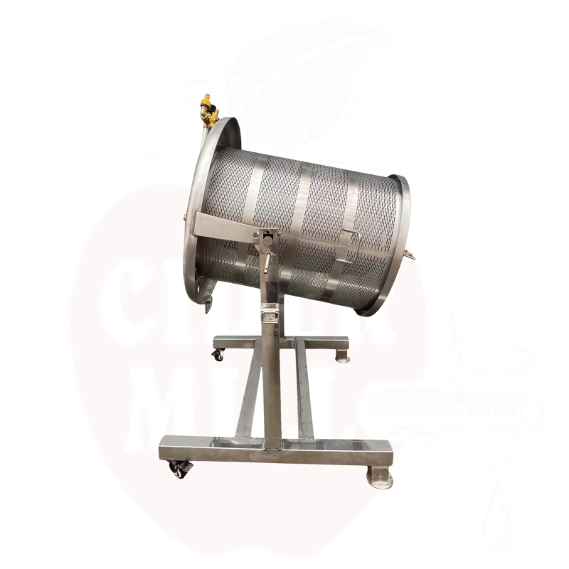 Raktažodžiai: hidraulinis presas, sulčių spaudimo presas, obuolių presas, uogų presas, sulčių gamyba, vaisių presas, 90l presas, nerūdijančio plieno presas