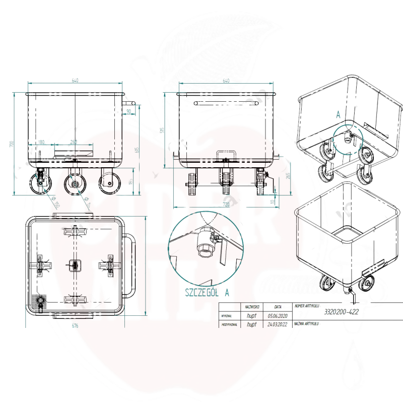 Raktažodžiai: pasvirimo vežimėlis, pramoninis vežimėlis, nerūdijančio plieno vežimėlis, AISI 304, uogų transportavimas, vaisių transportavimas, 200L vežimėlis, gamybos įmonės vežimėlis
