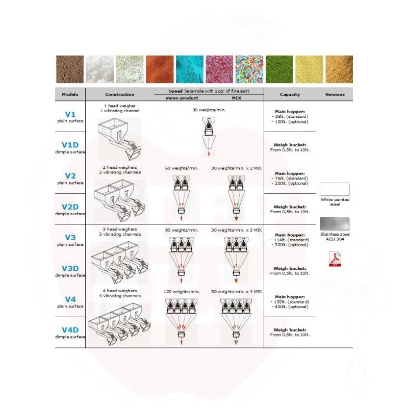 Svorio dozatoriai V/M/S/K serijos 0,5-8cm dalelėms
