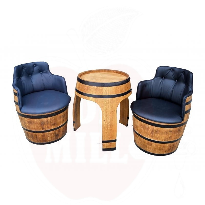 Ąžuolinis statinės stalas 56/66x77cm su 2 kėdėmis