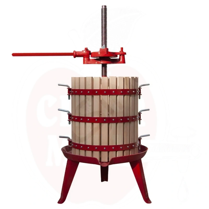 Īpašības: Pilnībā ražots Itālijā, tam ir 50cm diametra būris no iztvaikotām dižskābarža koka plāksnēm, izvilkta tērauda vītņskrūve, lietas dzelzs ratinis, izturīgs tērauda trijkāja atbalsts un pastiprināta tērauda mizu baseins. Divkāršā ātruma manuālā svira nodrošina efektīvu spiešanu.