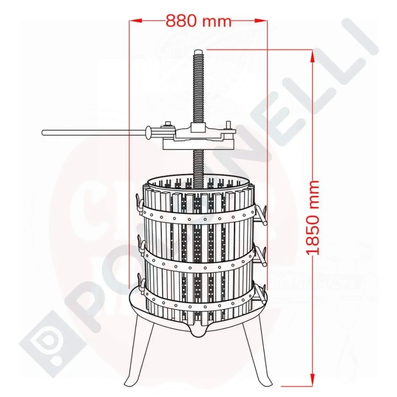 Lietošana: Mehāniskā sviru prese vīnogu izspaidu presēšanai, piemērota mazai un vidējai vīna ražošanai.