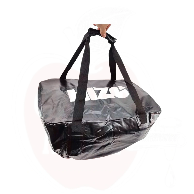 Šī pārnēsāšanas soma/uzglabāšanas pārsegs ir karstumā aizšūta, lai nodrošinātu maksimālu ūdensizturību. Somas apakšdaļā kopā ir četri klipši, kas tiek savienoti krustveida rakstā: augšējais kreisais klipsis tiek savienots ar apakšējo labo klipsi, un augšējais labais klipsis tiek savienots ar apakšējo kreiso klipsi.