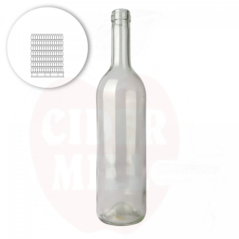 Stikla pudele 750ml bordo 400g 1631gab, caurspīdīga