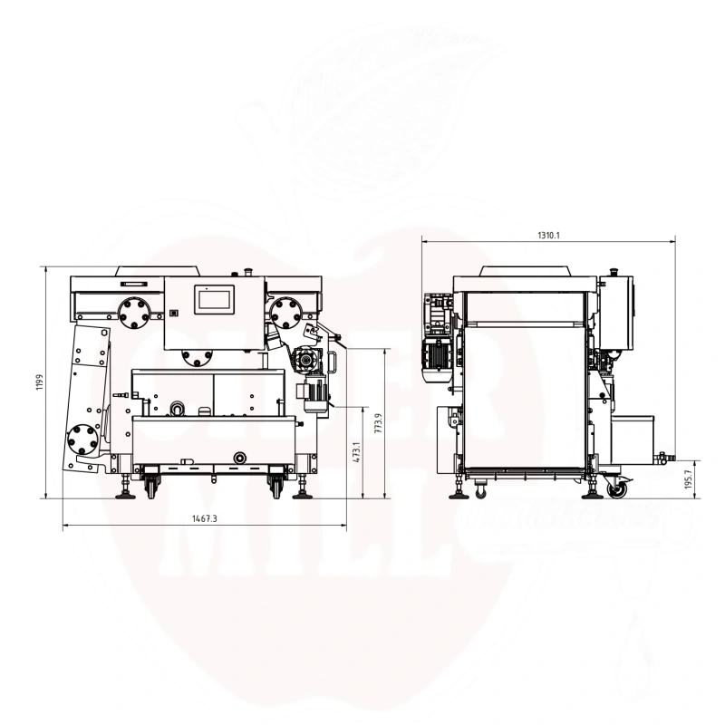 Helautomatisk bandpress i rostfritt stål säkerställer effektiv juicepressning upp till 400 kg/h. Enheten är tillverkad av högkvalitativt AISI 304 rostfritt stål.