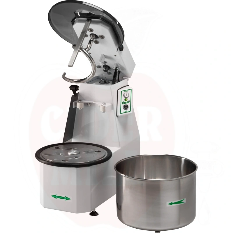 Upptäck den professionella degblandaren från italienska tillverkaren Fimar, designad för industriell användning i bagerier och storkök. Den rostfria 32-liters blandningsskålen säkerställer maximal produktivitet och hygien.